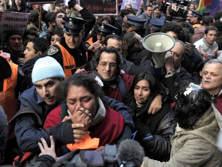 BUENOS AIRES, 14 Jul 2010 (AFP) -Defensores e opositores do casamento entre pessoas do mesmo sexo confrontaram-se verbalmente em frente ao Congresso argentino nesta quarta-feira, onde o Senado debate um projeto de lei que, se aprovado, permitirá o casamento entre homossexuais.